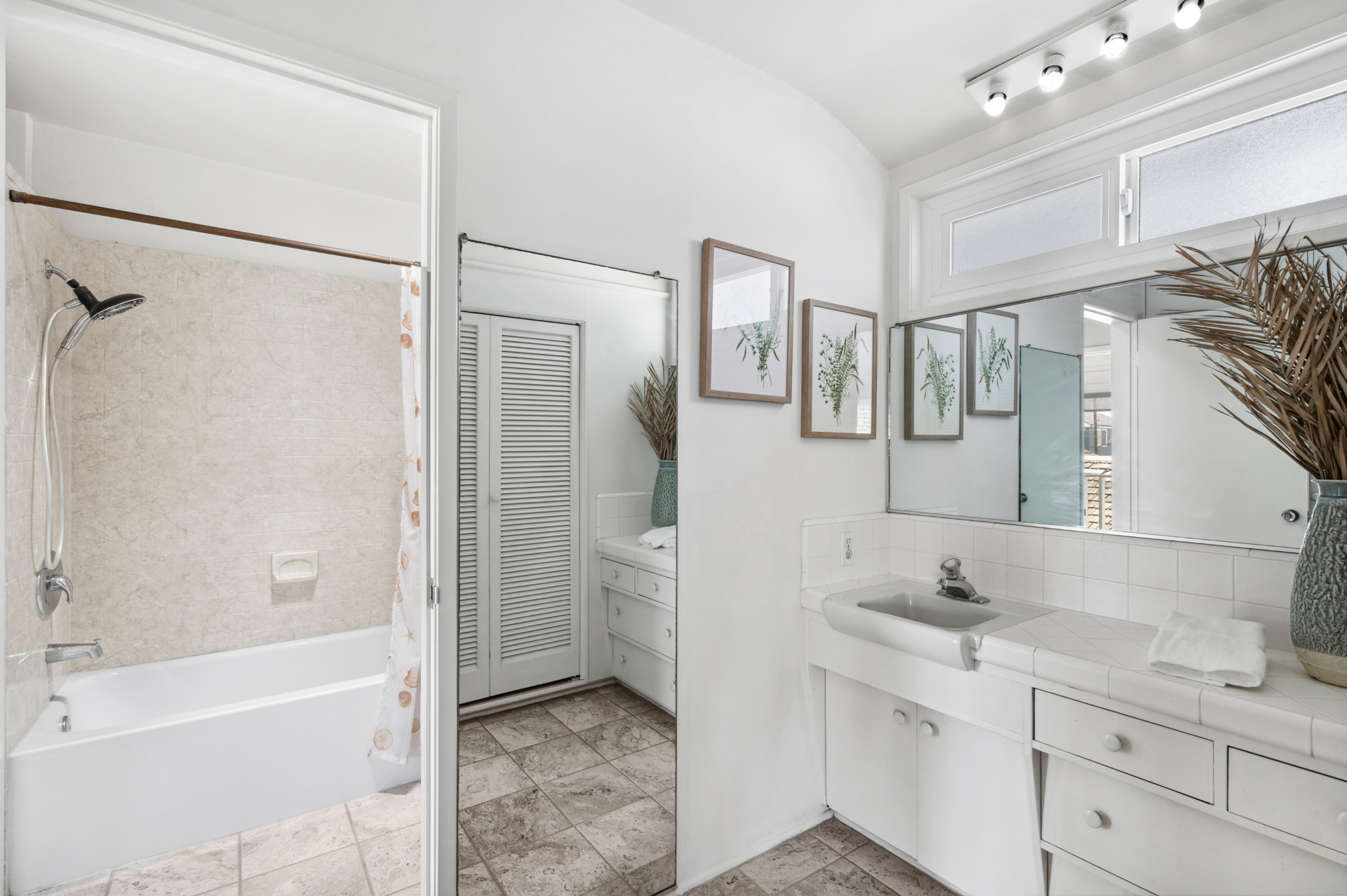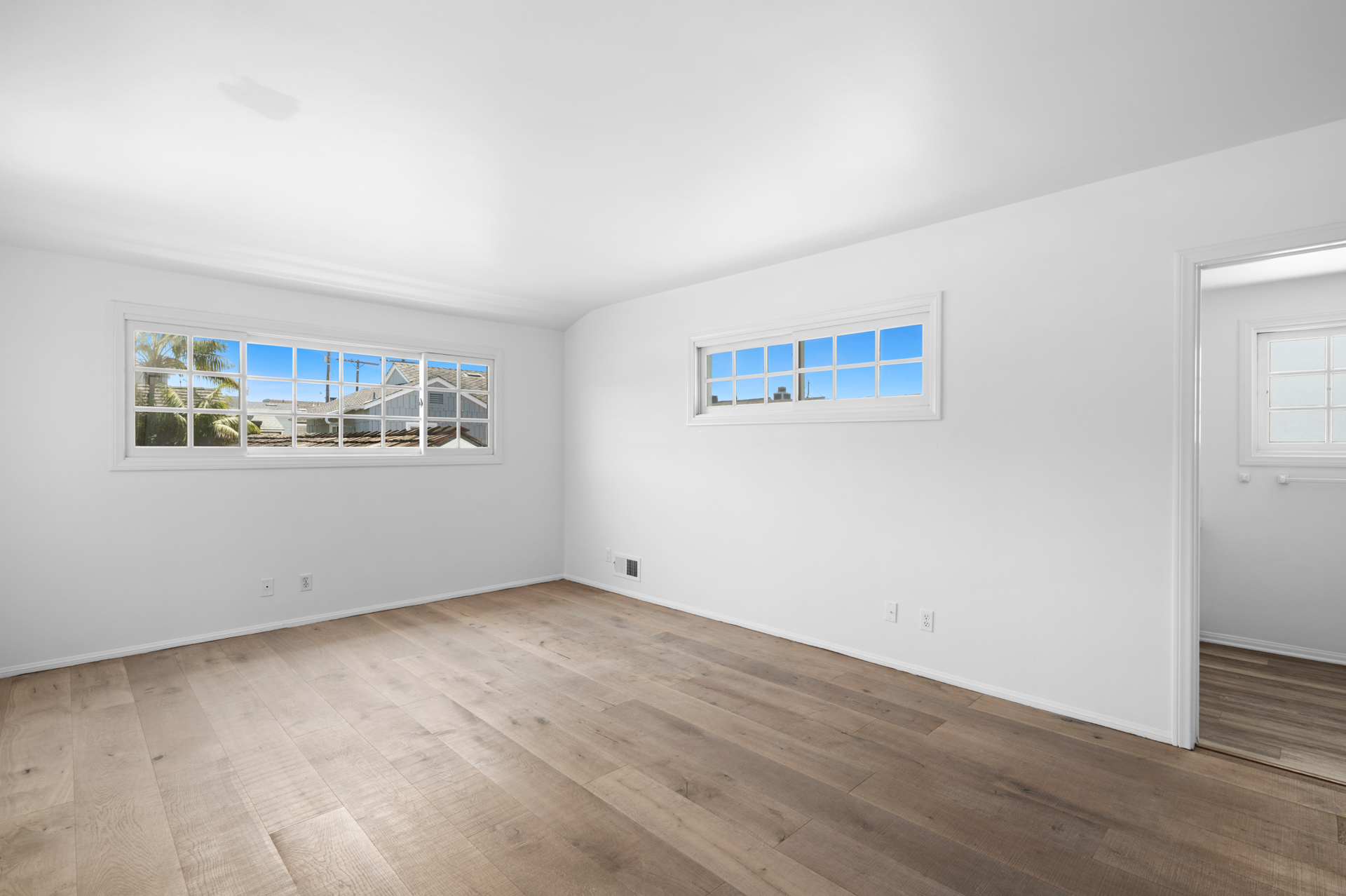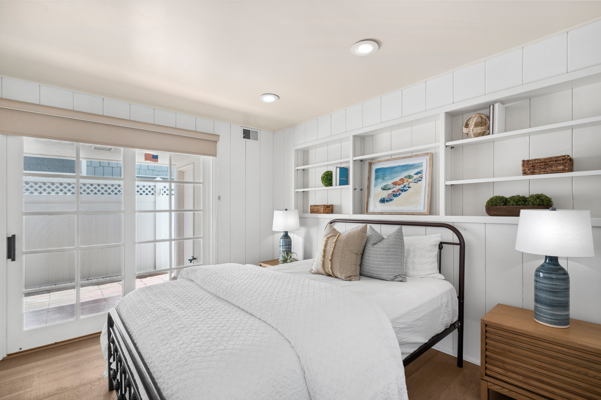 Wonderful and bright Balboa Island Mid-Century Cottage in the 100 block of Onyx, one block to the Village Center, on a quiet one-way street steps from the South Bayfront. The first level showcases a living room with brick fireplace, kitchen and dining areas opening to a side patio, and a rare first-floor bedroom with adjacent bath. The second level showcases a huge primary bedroom suite with fireplace and a peek-a-boo Bay view. The 2nd level also offers a large guest bedroom with its own bath and a substantial outdoor enclosed balcony. The home provides a sunny front patio and large two-car garage with extra parking in back. 121 Onyx is an ideal remodel or rebuild project for the buyer seeking an excellent Island location and a home with great potential!